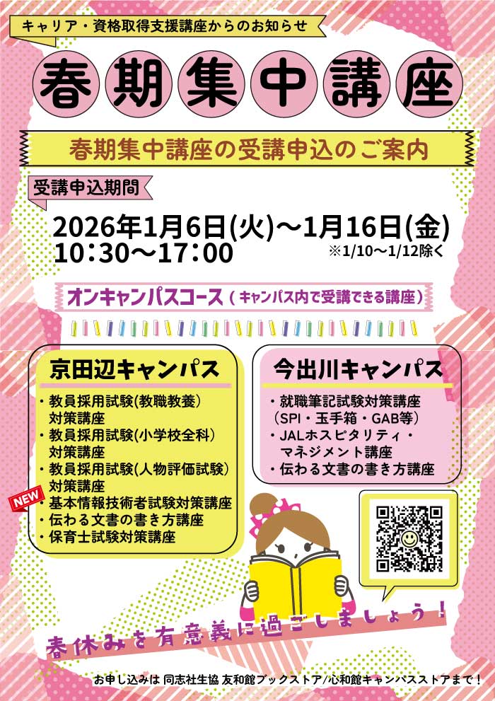 同志社女子大学 京田辺キャンパスキャリア・資格取得支援講座事務局 友和館2Fブックストア