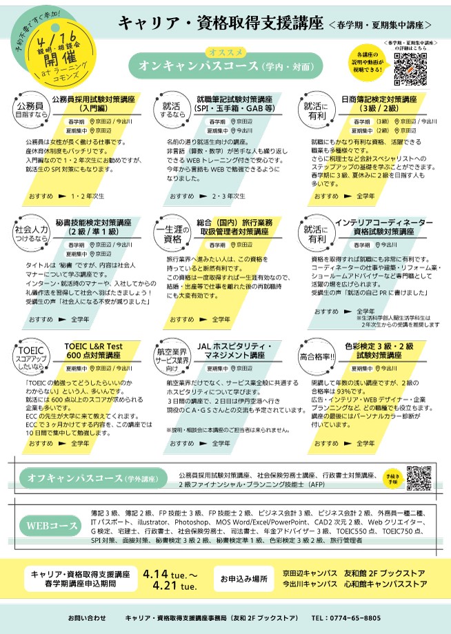 申込方法等のご質問は友和館ブックストア・心和館キャンパスストアまで。