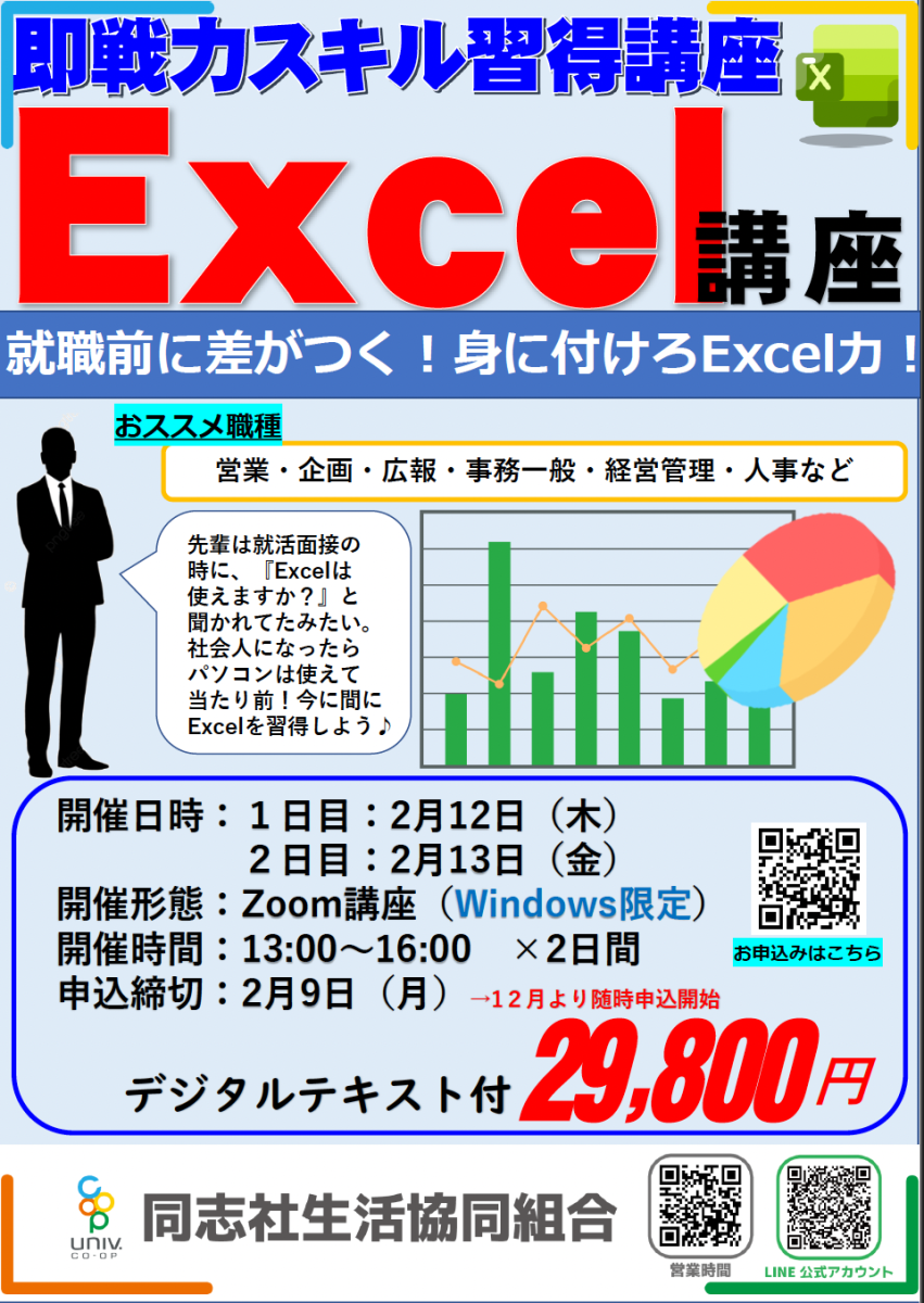 社会人になる準備として、学生の間にExcelの応用スキルを習得し、社会人1年生から即戦力として働きだしましょう