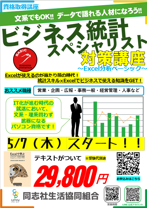 ビジネス統計スペシャリストは、Excelを用いたデータ分析能力を評価する資格です。