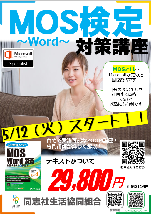 【申込受付中】MOS検定対策オンライン講座(Word)