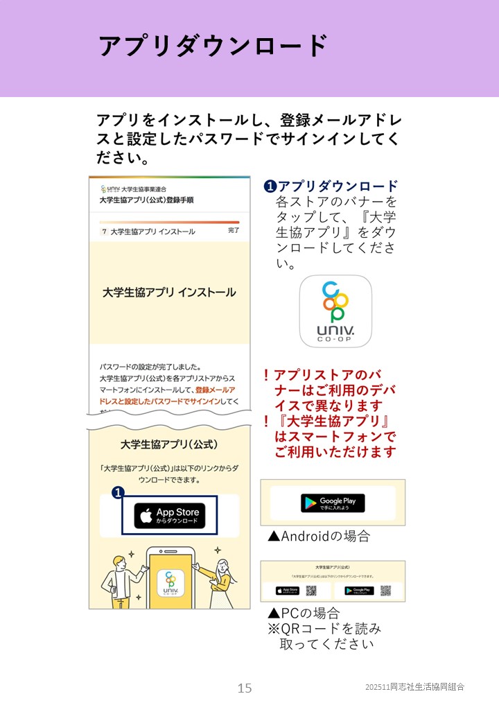 大学生協アプリ登録手順PDFはコチラ