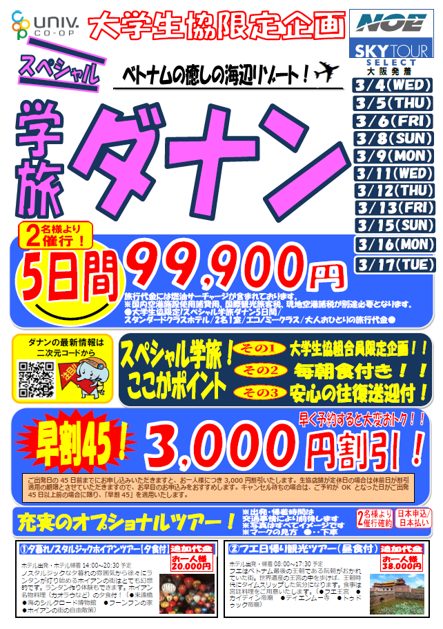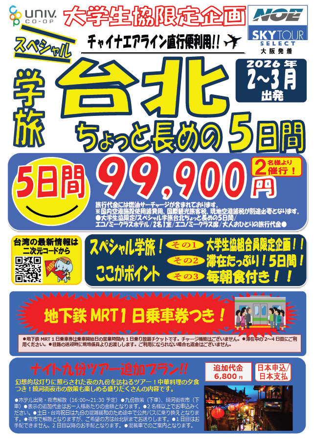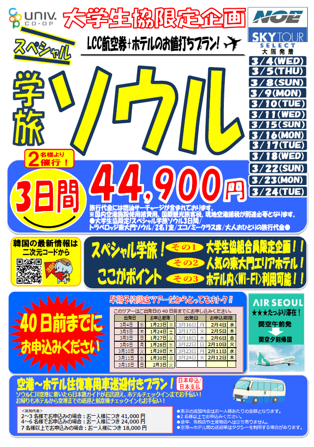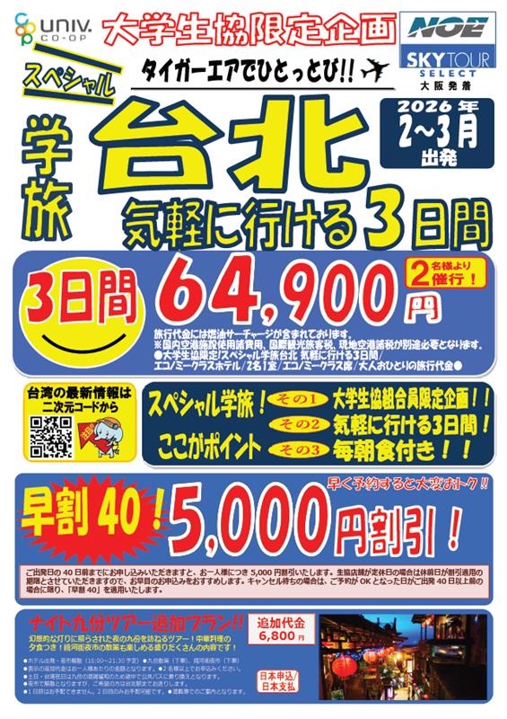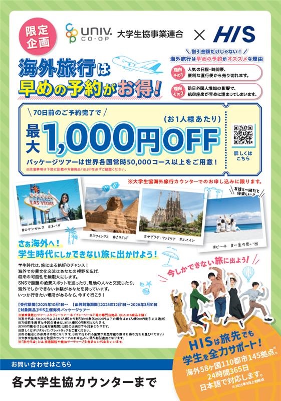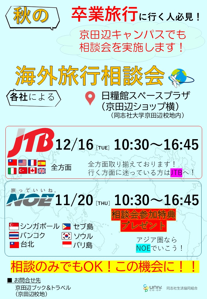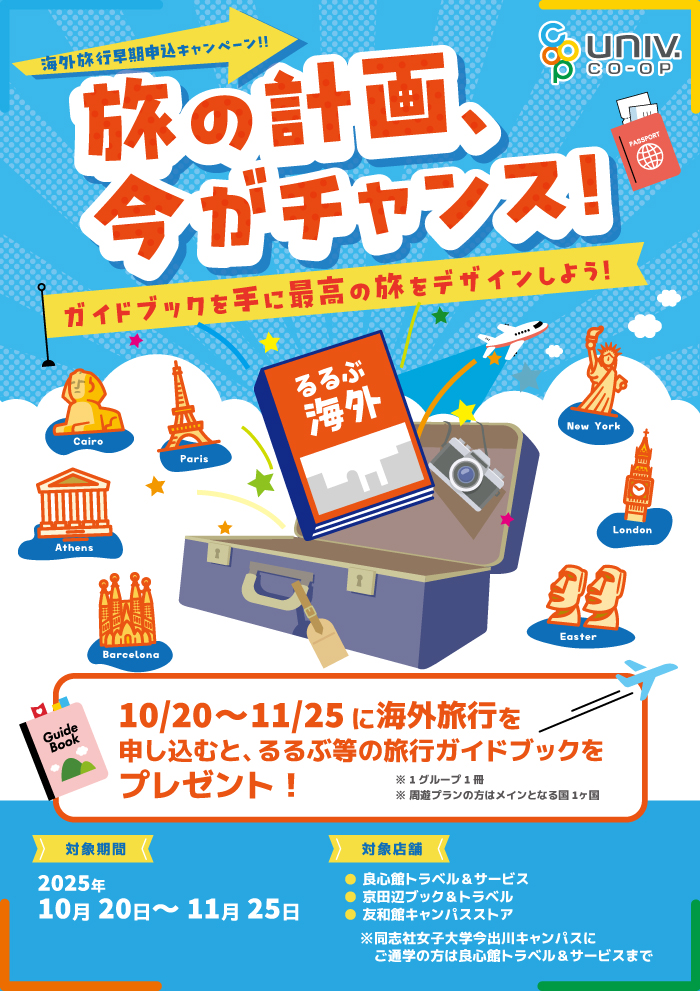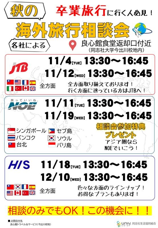 ※同志社女子大学今出川の方は同志社大学良心館トラベル&サービスにご来店ください。