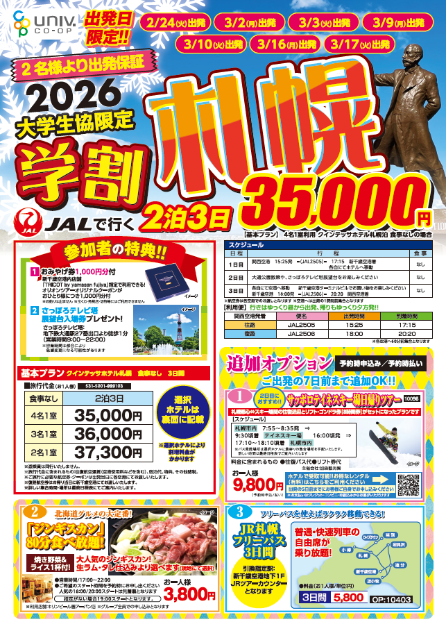 パッケージツアー、宿泊の手配、CO・OP学び旅