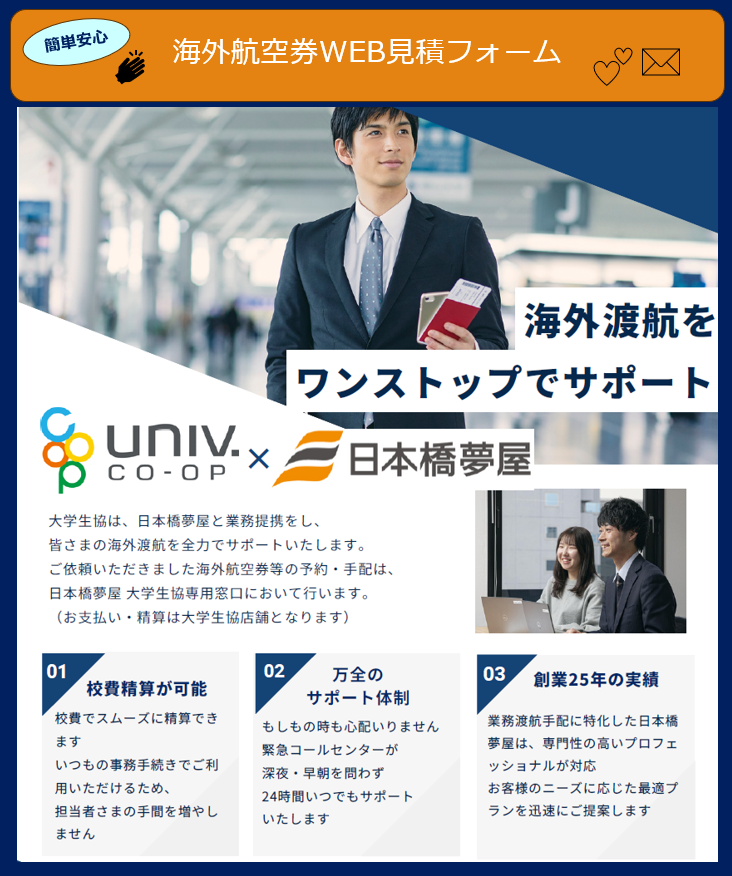飲食料品・文具・日雑・機器・出張・旅行の手配 | 友和館キャンパスストア | 8801 | お問い合わせ |