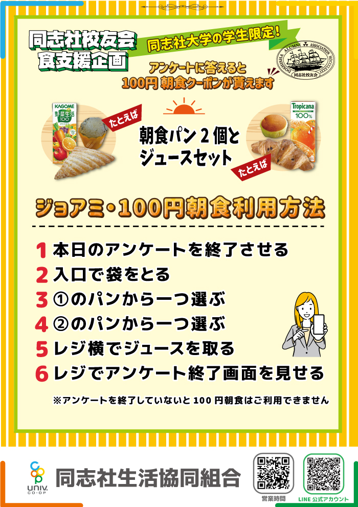 同志社大学100円朝食 ※10月1日(水)再開予定