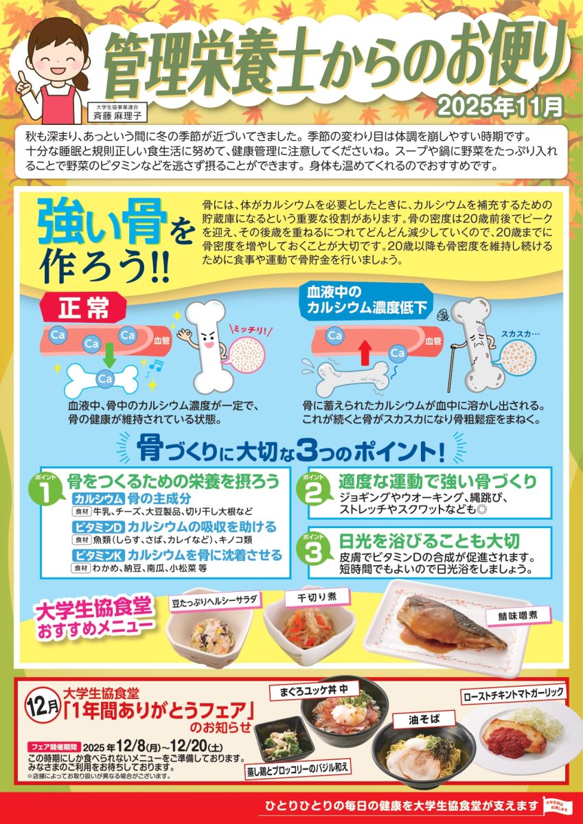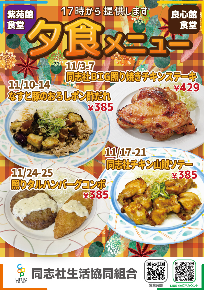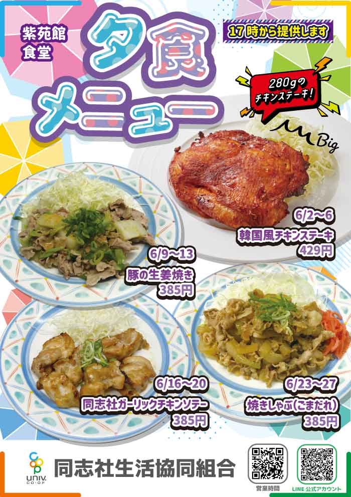 生協食堂メニュー情報