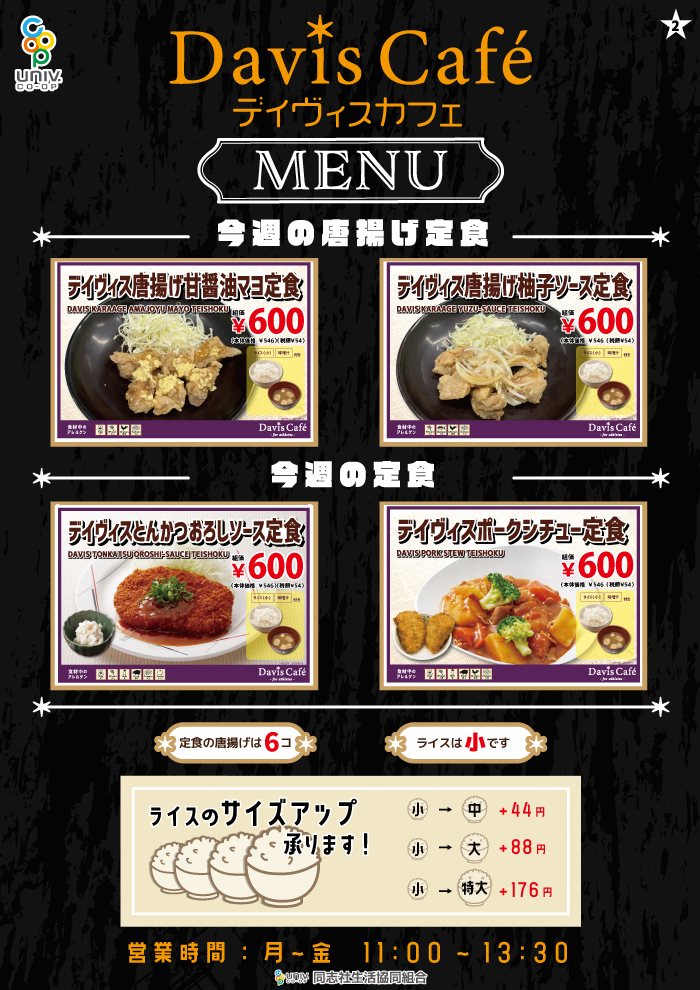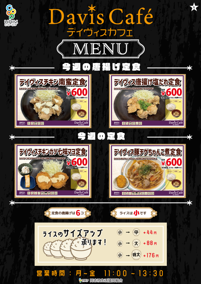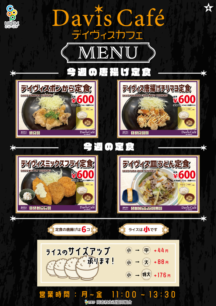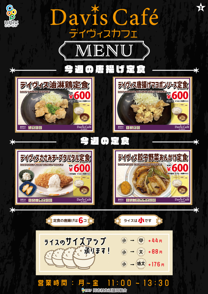 【同志社大学 京田辺】デイビスカフェ ※週替わりメニュー