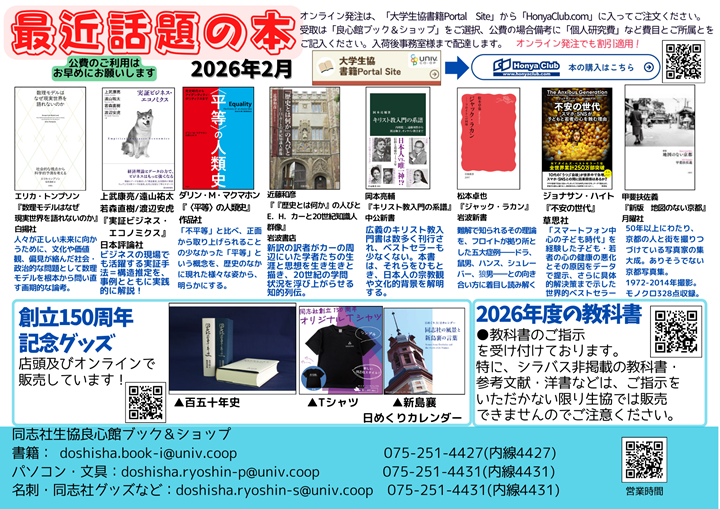 【同志社大学 今出川】書籍@良心館ブック&ショップ