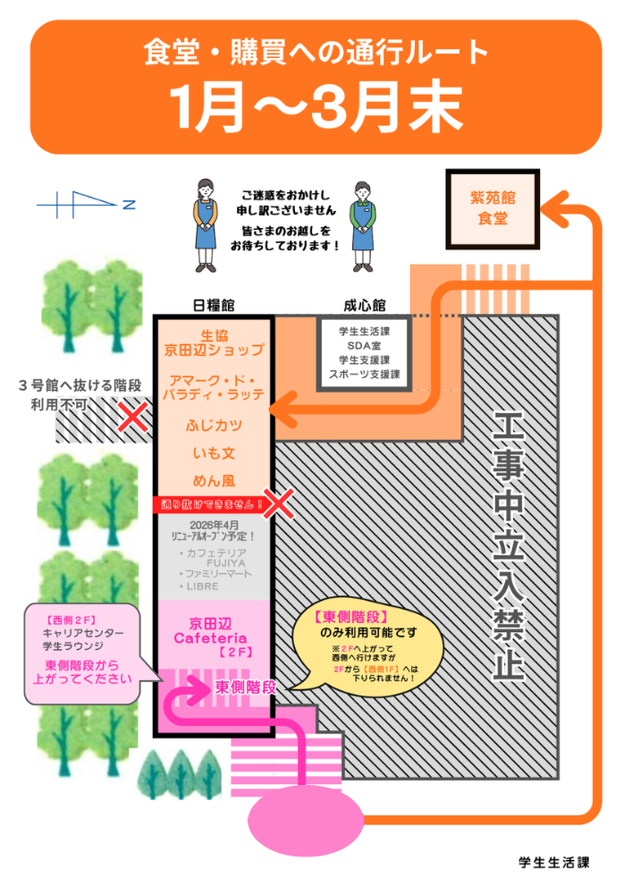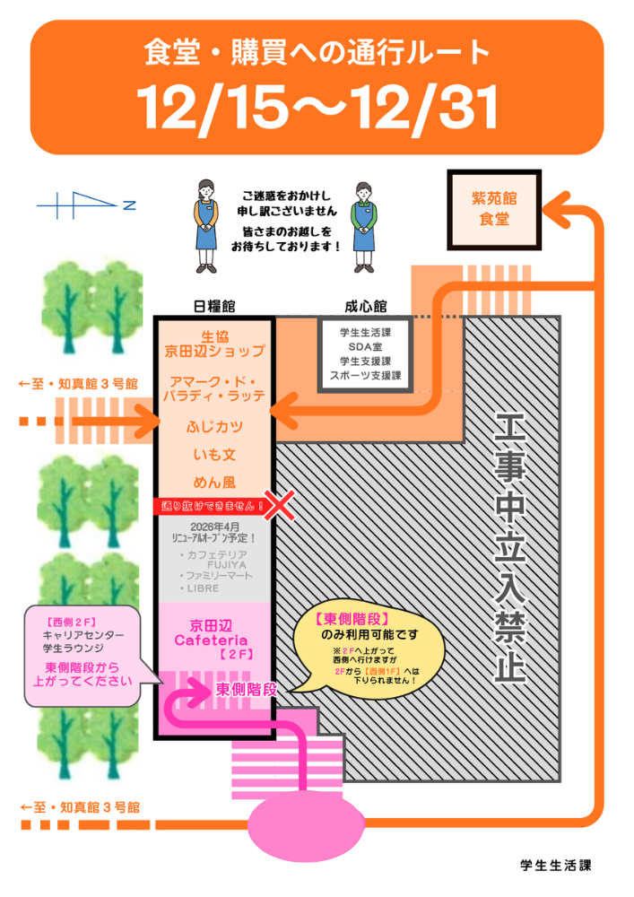【同志社大学 京田辺】食堂・購買への通行ルートについて