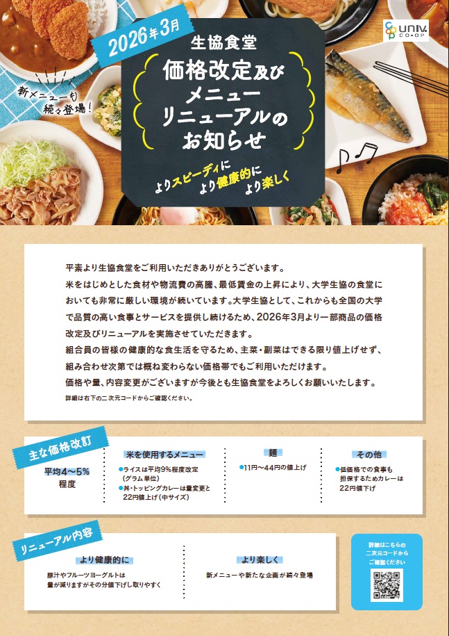 事情をご理解いただき、今後も生協食堂をご利用いただけますと幸いです。